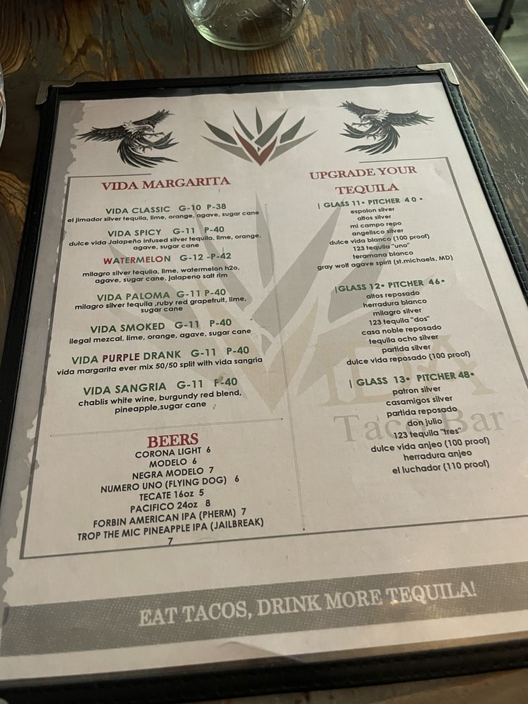 Whether you're in for a quick bite or a relaxed meal with friends, Vida Taco Bar consistently delights with its fresh, authentic offerings and friendly service. Experience taco night like never before!